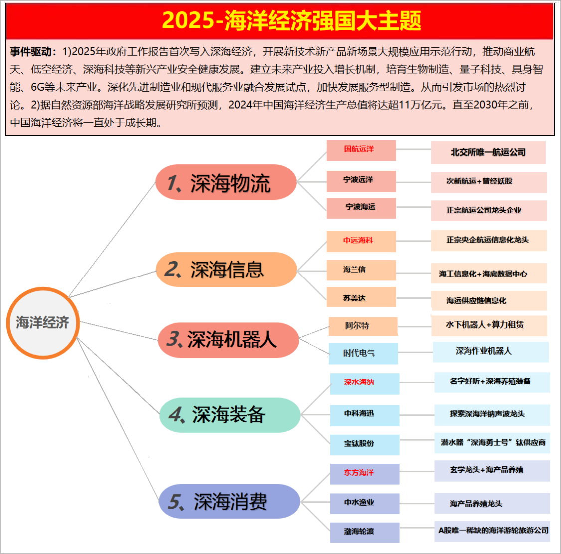 (海洋经济概念的波动很大,这里梳理一下板块的核心企业,仅供教学参考,不作为买卖依据,据此操作风险自负)