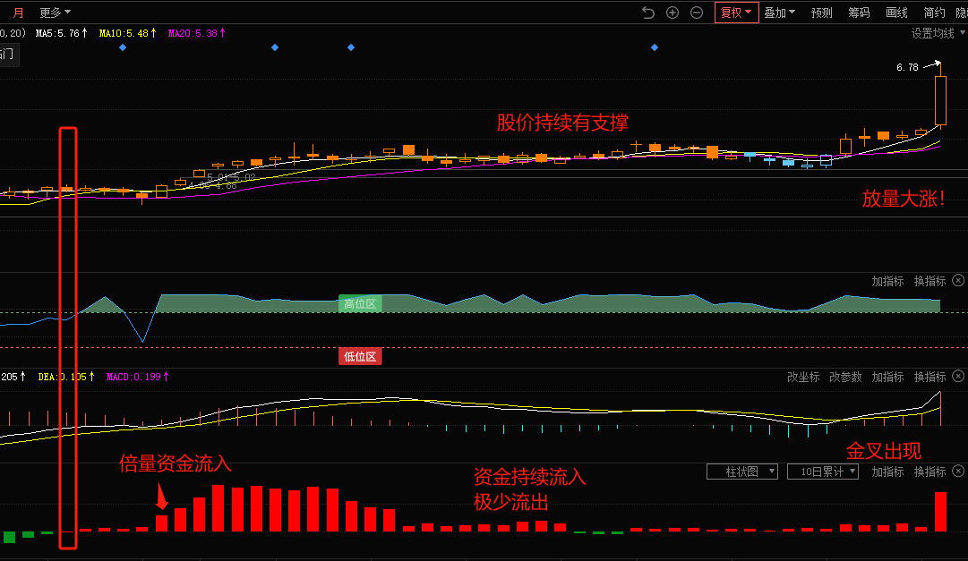 甚至该标的仅有三天主力资金流出,随后就开启一波上涨,资金开始持续流入,股价涨幅不明显但主力资金已经明显开始流入,