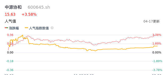 04月17日,中源协和收报15.63,股价涨幅3.58%,成交金额8442.79万元,换手率1.17%。