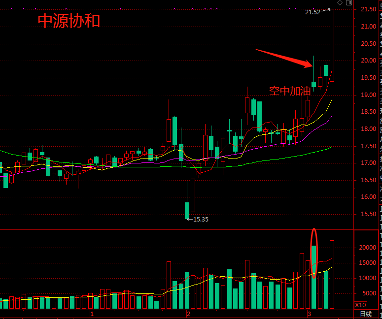 中源协和,本周二出现的空中加油的形态,随后股价慢慢微弹,最后终于迎来快速拉升。