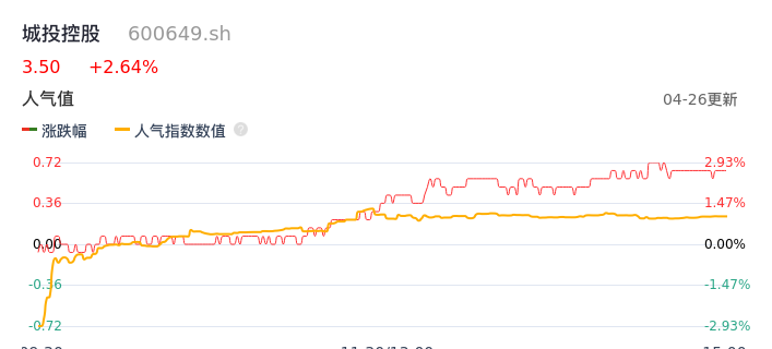 04月26日,城投控股收报3.50,股价涨幅2.64%,成交金额4576.53万元,换手率0.52%。