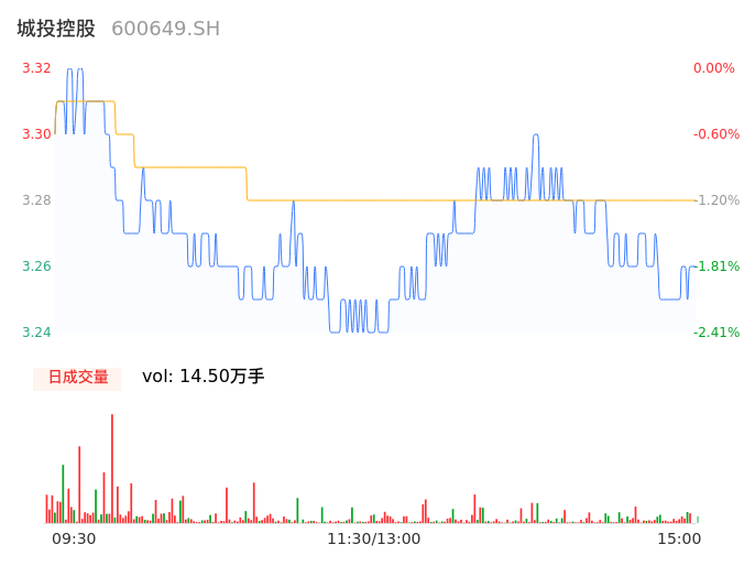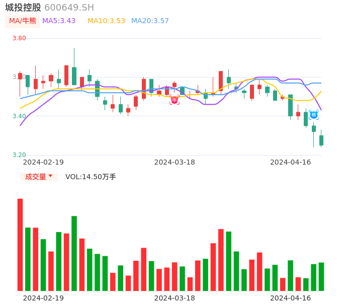 04月16日,城投控股收报3.25,股价涨幅-2.11%,成交金额4748.81万元,换手率0.57%。