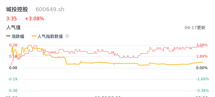 04月17日,城投控股收报3.35,股价涨幅3.08%,成交金额4157.13万元,换手率0.49%。