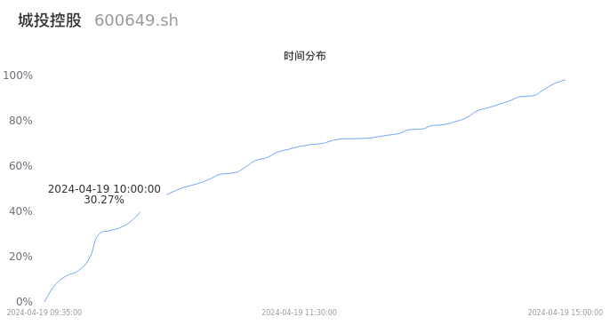600649城投控股2024年04月19日成交9.26万手,成交金额3060.61万元,相较昨日缩量4854手,换手率0.37%,成交清淡。