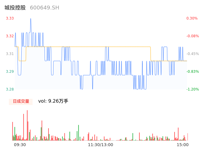 04月19日,城投控股收报3.30,股价涨幅-0.60%,成交金额3060.61万元,换手率0.37%。