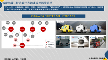 多元创新与合作构建行业新价值体系,共享出行变革与物流增效应用,将快速拓展自动驾驶应用空间。