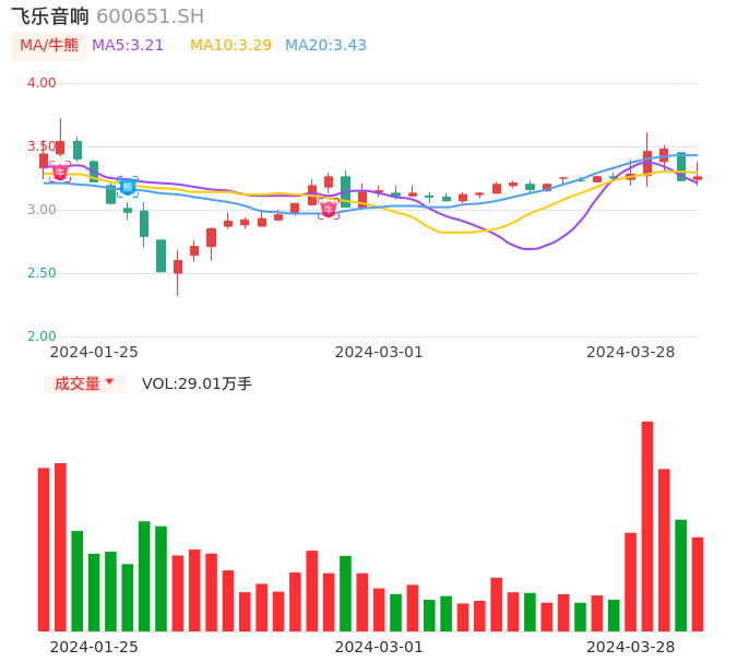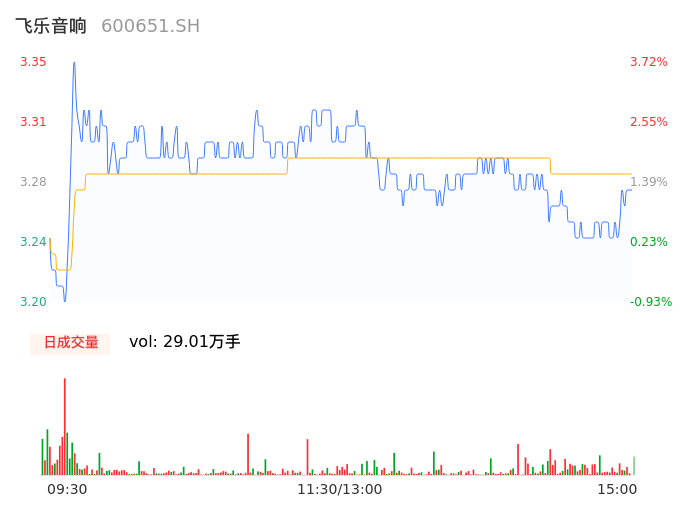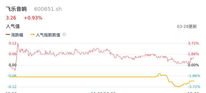 03月28日,飞乐音响收报3.26,股价涨幅0.93%,成交金额9510.81万元,换手率1.16%。