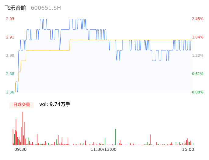 04月25日,飞乐音响收报2.90,股价涨幅1.40%,成交金额2828.18万元,换手率0.39%。