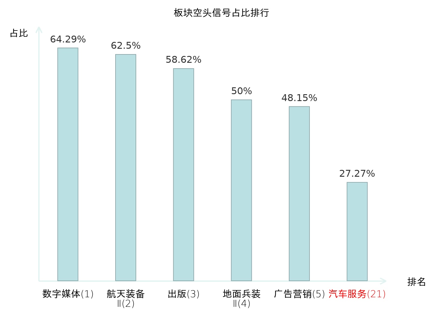 全市场所有行业板块中主力空头信号占比排名中,数字媒体板块位居第一。出版板块名次提升最快,较昨日上升116位。