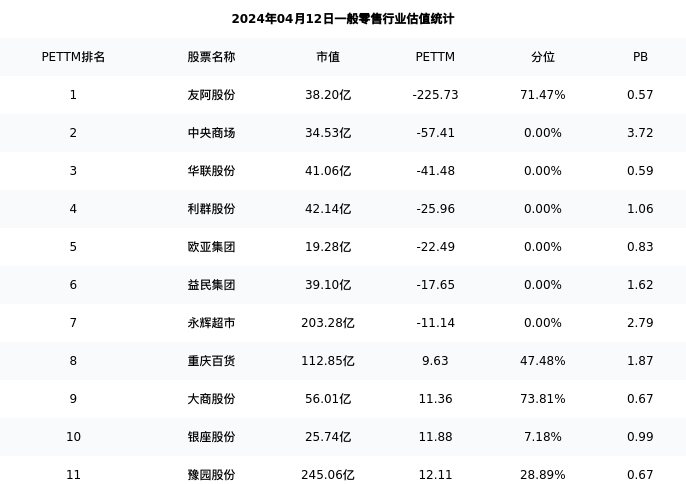 从估值角度看:豫园股份最新市盈率PETTM为12.11,在行业内排名4/62,处于28.89分位。