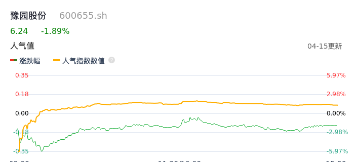 04月15日,豫园股份收报6.24,股价涨幅-1.89%,成交金额2.29亿元,换手率0.96%。