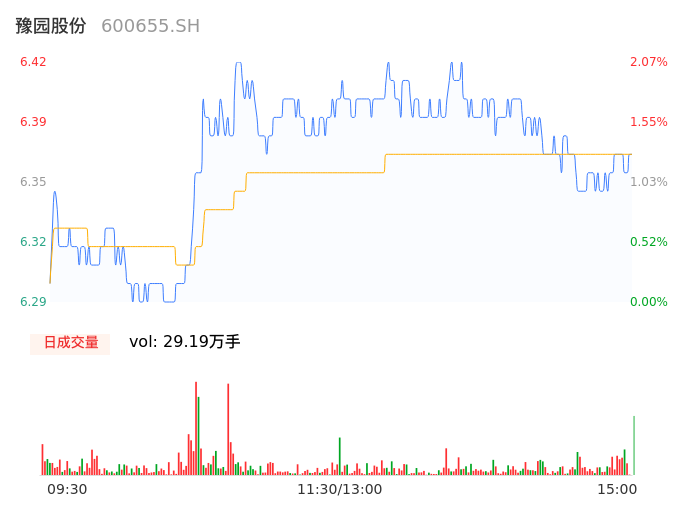04月12日,豫园股份收报6.36,股价涨幅1.11%,成交金额1.86亿元,换手率0.75%。