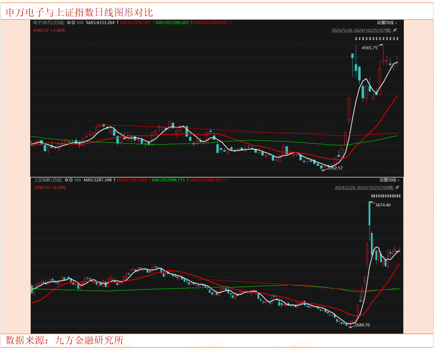 就如同万物无法脱离地心引力一样。目前可以理解电子板块,在等大盘指数新一路上涨,但是如果大盘无法继续新高,电子板块也将向下调整,因为其赚钱效应减少,主流资金拉高需要更多的资金成本。