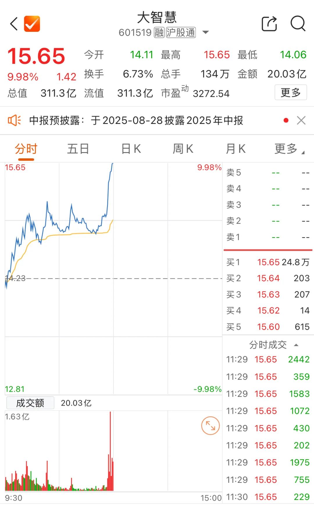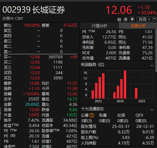8月15日上午,券商板块再度活跃,长城证券连收3个涨停,最新A股总市值达487亿元。