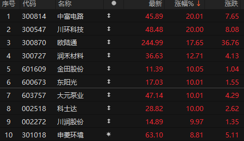 盘面上,PEEK材料全线走强,金田科技涨停封板。液冷服务器板块走高,东阳光大元泵业等数只个股涨停封板。PCB概念走强,中富电路“20cm”涨停,诺德股份东材科技等涨停封板。地产、证券板块联袂上涨,衢州发展长城证券均斩获3连板。