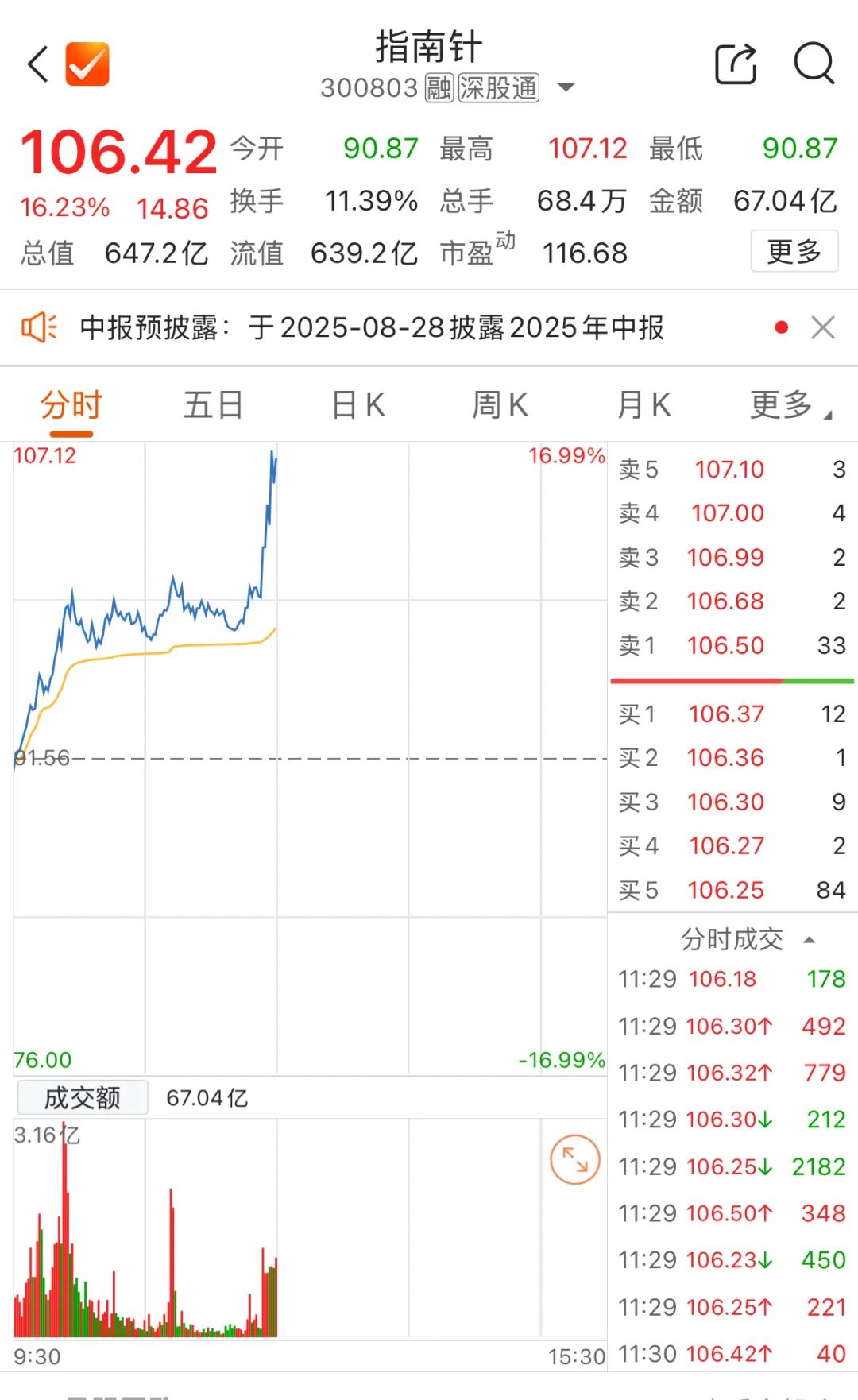 个股方面,距离收盘前20分钟左右,大智慧同花顺指南针三只股票股价迅速拉升,截至午间收盘,大智慧涨9.98%,同花顺涨14.39%,指南针涨16.23%。