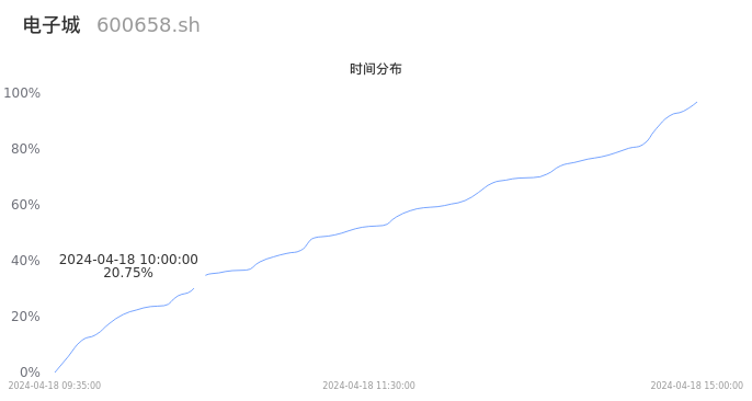 600658电子城2024年04月18日成交7.48万手,成交金额2582.49万元,相较昨日缩量5976手,换手率0.67%,成交清淡。