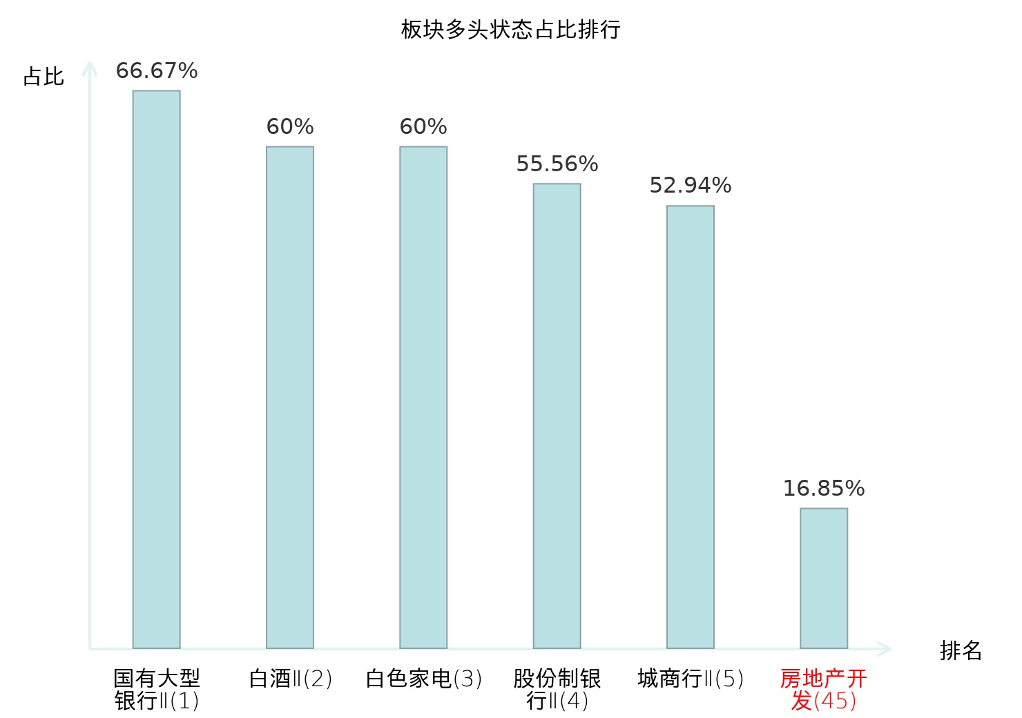 全市场所有行业板块中主力多头状态占比排名中,国有大型银行Ⅱ板块位居第一。医疗美容板块名次提升最快,较昨日上升110位。