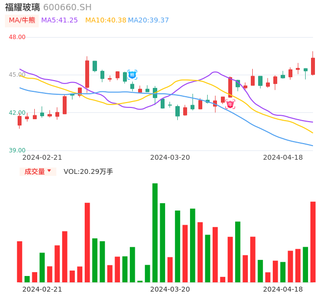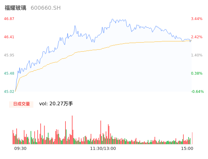 04月18日,福耀玻璃收报46.34,股价涨幅2.27%,成交金额9.40亿元,换手率1.01%。