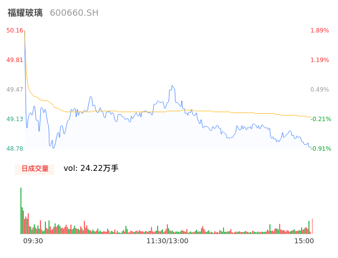 04月29日,福耀玻璃收报48.80,股价涨幅-0.87%,成交金额11.90亿元,换手率1.21%。