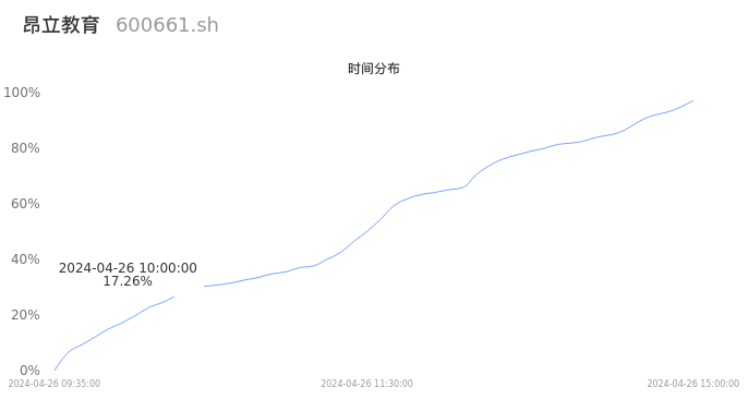 600661昂立教育2024年04月26日成交10.75万手,成交金额1.03亿元,相较昨日放量1.72万手,换手率3.75%,成交清淡。