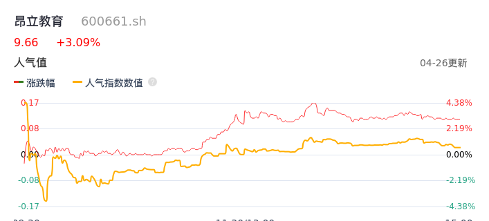 04月26日,昂立教育收报9.66,股价涨幅3.09%,成交金额1.03亿元,换手率3.75%。