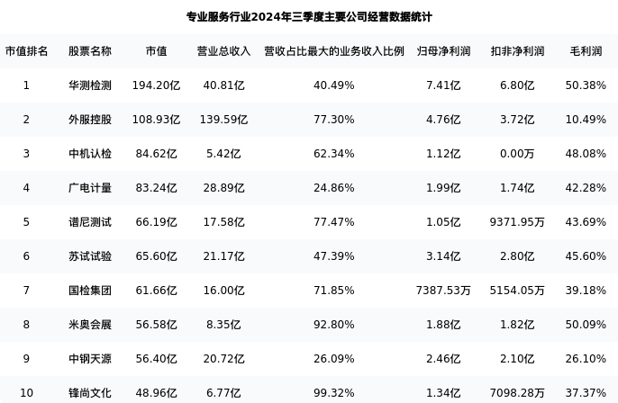 外服控股最新报告期数据为三季度,下表汇总了专业服务行业内市值靠前的公司三季度主要经营数据