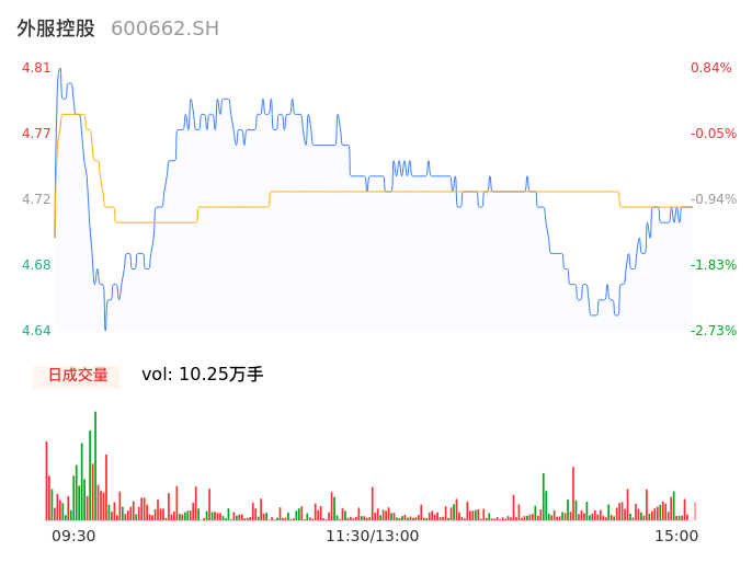04月15日,外服控股收报4.72,股价涨幅-1.05%,成交金额4842.55万元,换手率0.97%。
