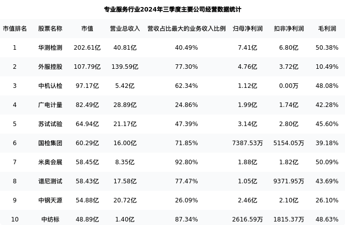 外服控股最新报告期数据为三季度,下表汇总了专业服务行业内市值靠前的公司三季度主要经营数据