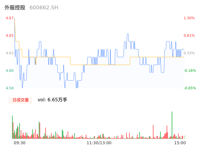 04月23日,外服控股收报4.62,股价涨幅0.22%,成交金额3069.26万元,换手率0.63%。