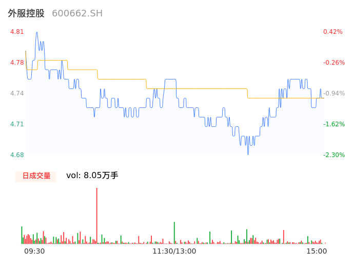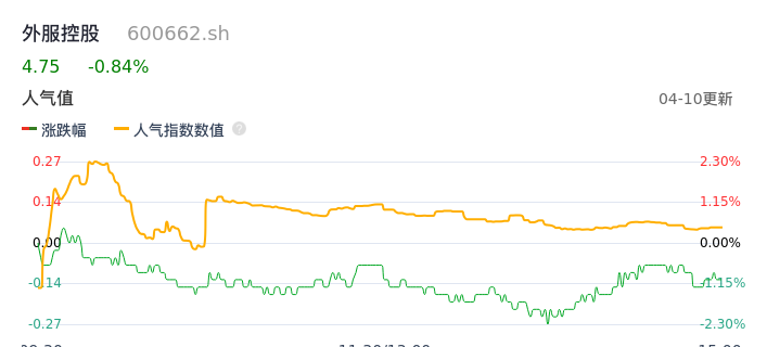 04月10日,外服控股收报4.75,股价涨幅-0.84%,成交金额3816.78万元,换手率0.76%。