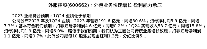 值得注意的是:2024年04月中金公司的徐卓楠/林思婕/王杰睿/石狄/蒋菱钢分析师,首次发布关于外服控股的研究报告,标题为:外服控股(600662):外包业务快速增长 盈利能力承压。