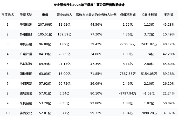 外服控股最新报告期数据为三季度,下表汇总了专业服务行业内市值靠前的公司三季度主要经营数据