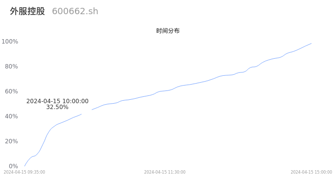 600662外服控股2024年04月15日成交10.25万手,成交金额4842.55万元,相较昨日放量3.91万手,换手率0.97%,成交清淡。