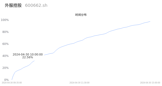 600662外服控股2024年04月30日成交10.30万手,成交金额4931.80万元,相较昨日缩量4.34万手,换手率0.98%,成交清淡。