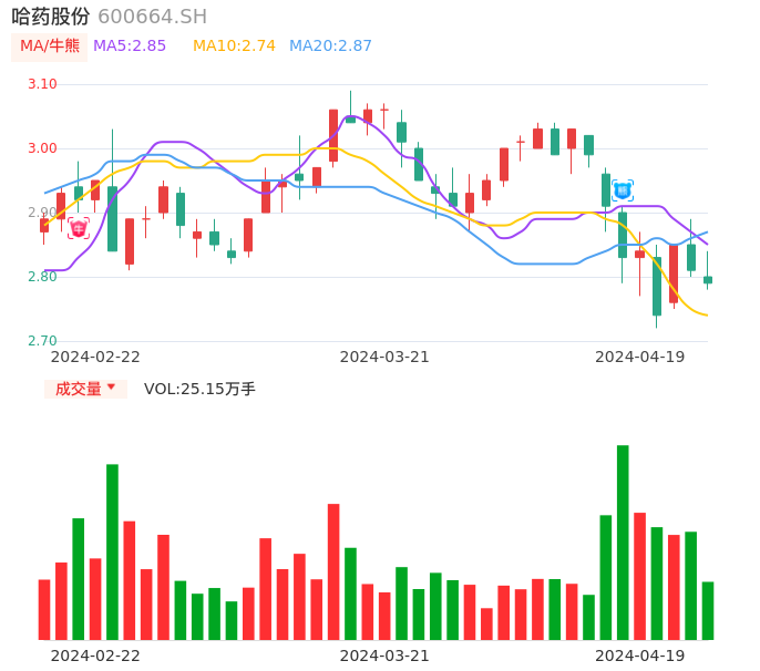 04月19日,哈药股份收报2.79,股价涨幅-0.71%,成交金额7055.46万元,换手率1.00%。