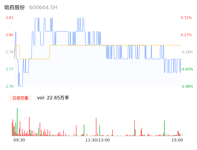 04月22日,哈药股份收报2.77,股价涨幅-0.72%,成交金额6313.07万元,换手率0.90%。