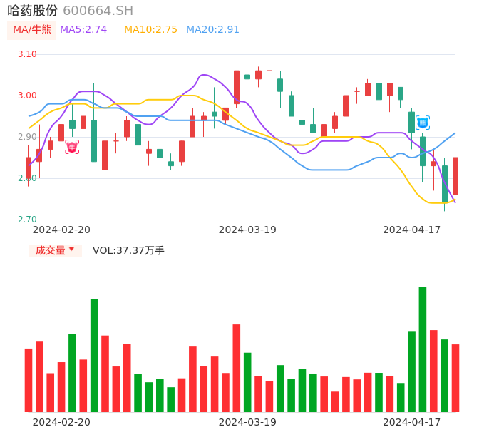 04月17日,哈药股份收报2.85,股价涨幅4.01%,成交金额1.05亿元,换手率1.48%。