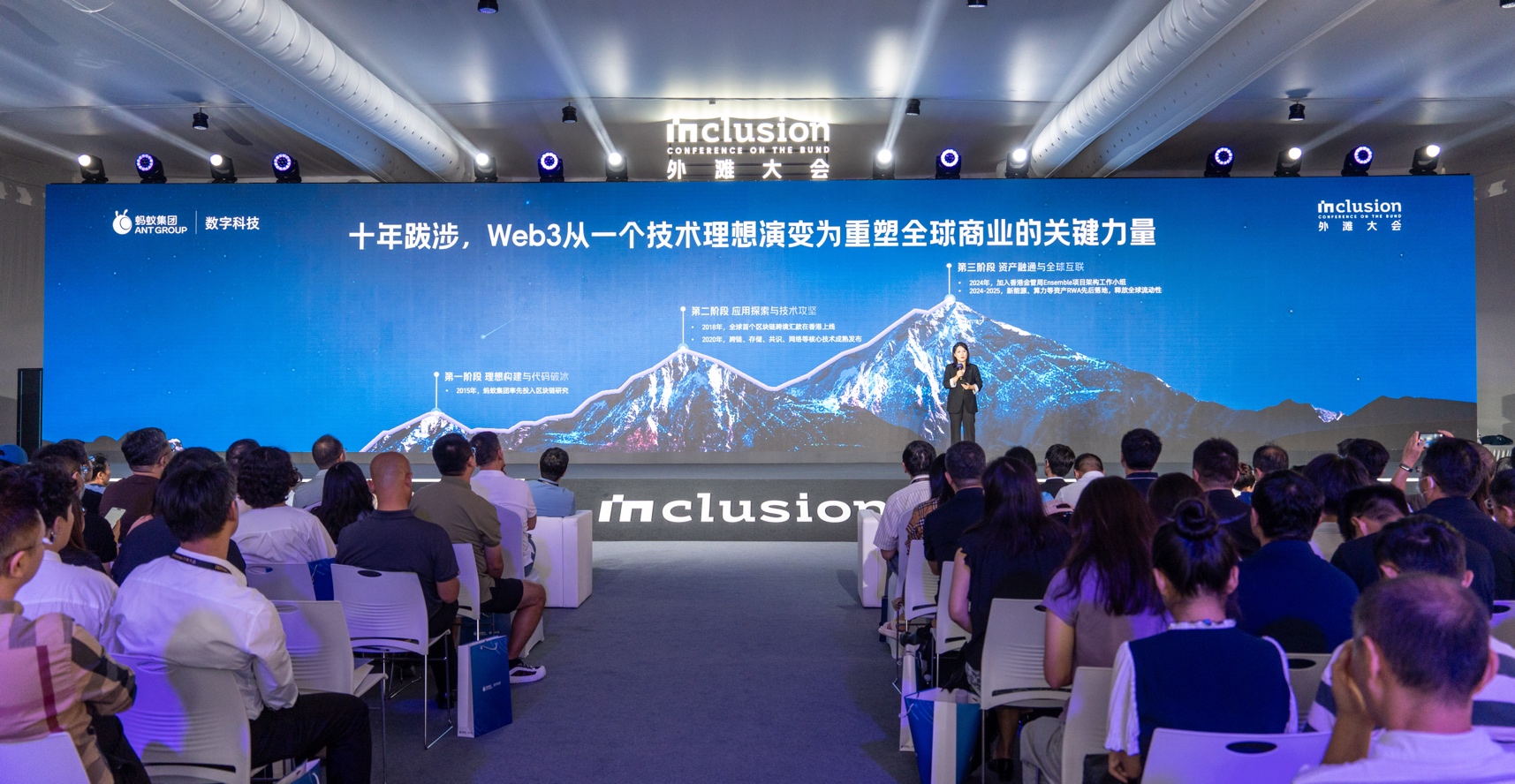 闫莺系统梳理了蚂蚁链十年来的Web3技术发展进程,从最初在杭州办公室写出第一行可运行代码,到2018年推出全球首个区块链跨境汇款系统,再到2020年坚持投入跨链、存储、网络等底层技术,她强调“服务真实价值”始终是蚂蚁链的原生基因。
