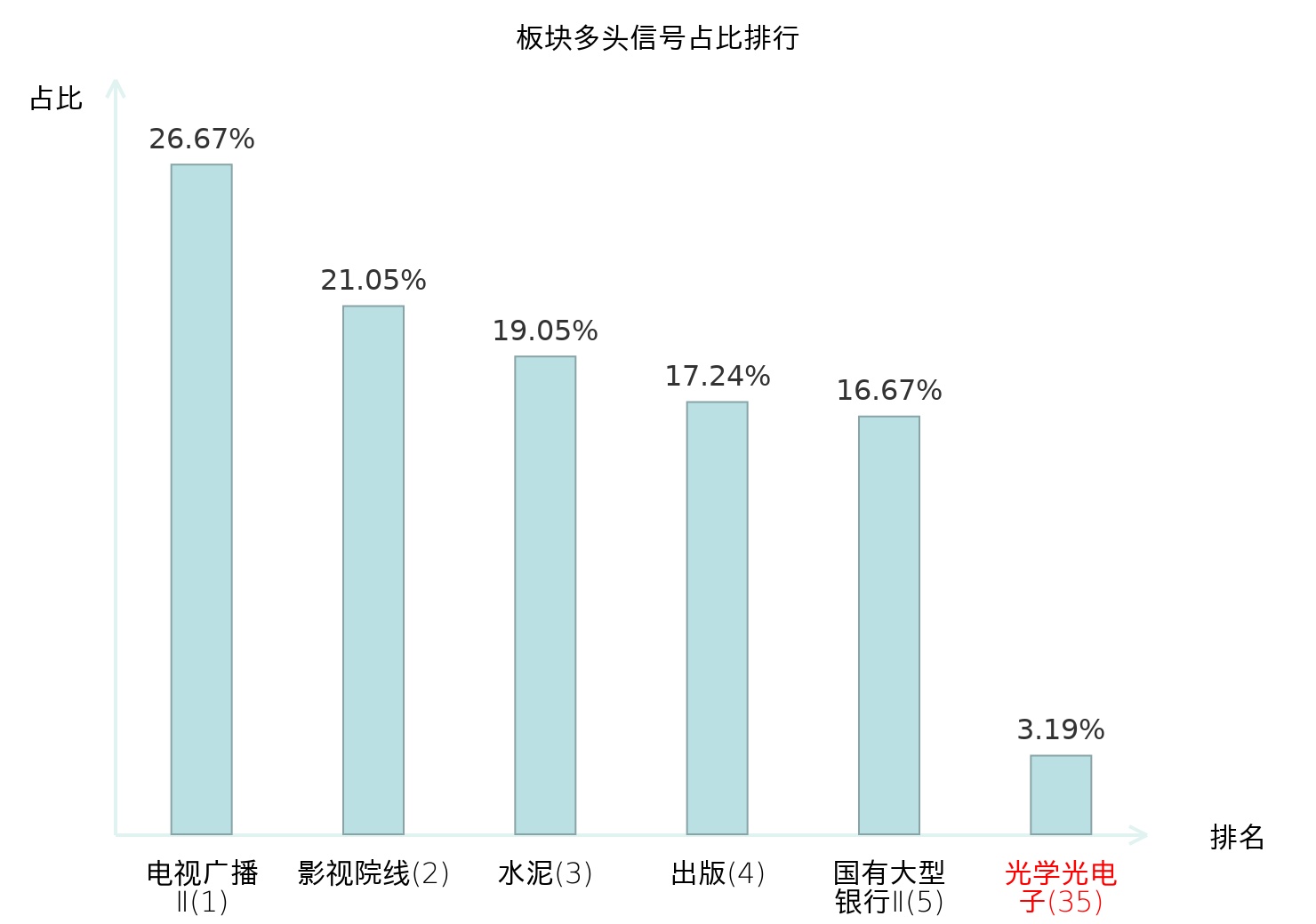 从主力宝信号数据分析,奥瑞德所属的光学光电子板块中共3只股票发出主力多头信号,主力多头信号占比在全行业中排名第35位,较昨日一致。排名处于中上游水平,表明主力对该板块当日整体呈现相对积极的参与意愿;维持不变的排名反映出主力态度未发生明显调整。全市场所有行业板块中主力多头信号占比排名中,电视广播Ⅱ板块位居第一;国有大型银行Ⅱ板块名次提升最快,较昨日上升118位。上述变动体现了不同行业间主力资金分布的结构性差异及动态变化,为投资者评估板块相对强度与潜在关注度提供了客观依据。