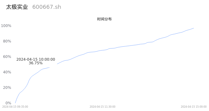 600667太极实业2024年04月15日成交52.41万手,成交金额3.40亿元,相较昨日缩量1.36万手,换手率2.49%,成交清淡。