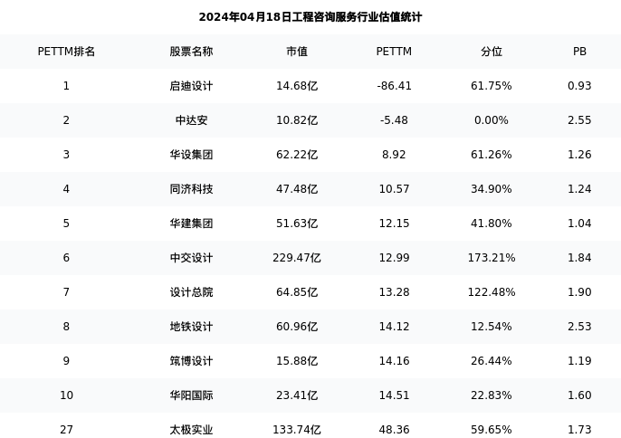 从估值角度看:太极实业最新市盈率PETTM为48.36,在行业内排名25/41,处于59.65分位。