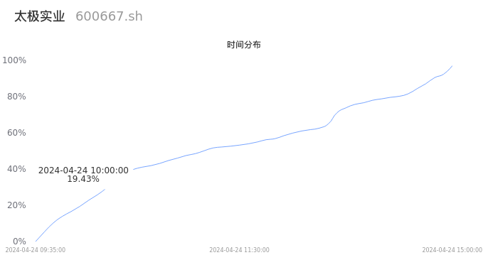 600667太极实业2024年04月24日成交29.98万手,成交金额1.84亿元,相较昨日放量6262手,换手率1.42%,成交清淡。