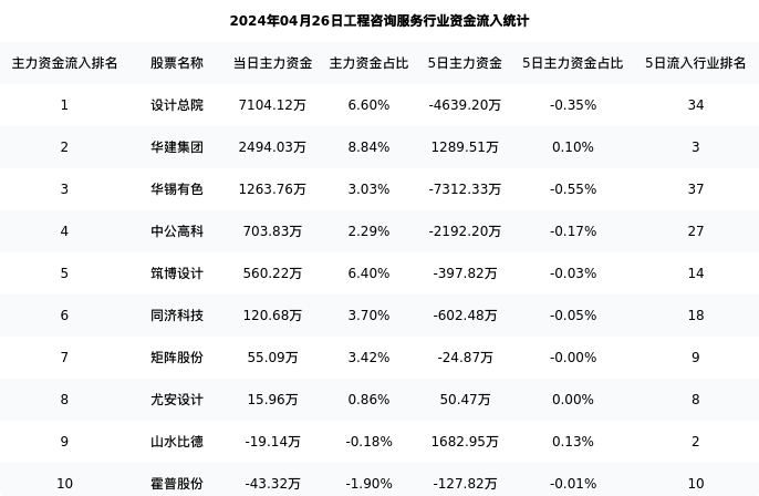 从主力资金流向来看,工程咨询服务行业今日主力资金流入39.61亿元,在所有申万二级行业中排名:96/131。