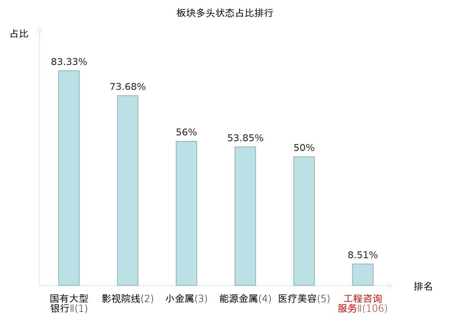 从主力宝信号数据分析,太极实业所属的工程咨询服务Ⅱ板块中共4只股票处于主力多头状态,主力多头状态占比在全行业中排名第106位,较昨日下降1位;较高的排名表明主力对于该板块整体看多意愿较强,而此次微幅下降可能反映了主力对该板块态度的细微调整;全市场所有行业板块中主力多头状态占比排名中,国有大型银行Ⅱ板块位居第一;电视广播Ⅱ板块名次提升最快,较昨日上升99位;这些变动揭示了不同行业间主力资金偏好的结构性变化,为投资者评估板块相对强度及潜在趋势提供了客观依据。