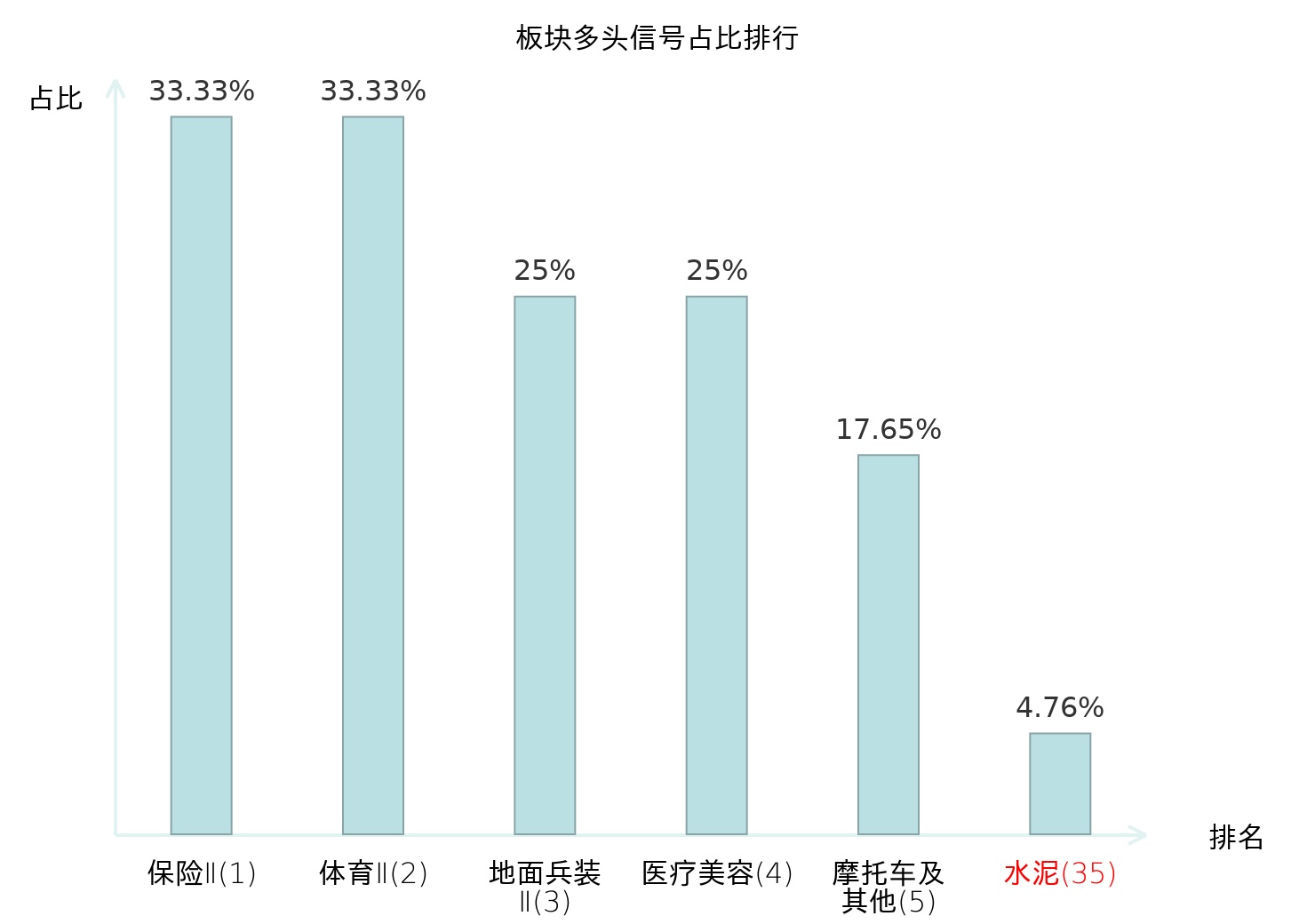 全市场所有行业板块中主力多头信号占比排名中,保险Ⅱ板块位居第一。体育Ⅱ板块名次提升最快,较昨日上升128位。