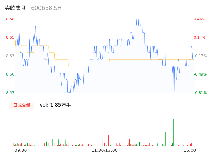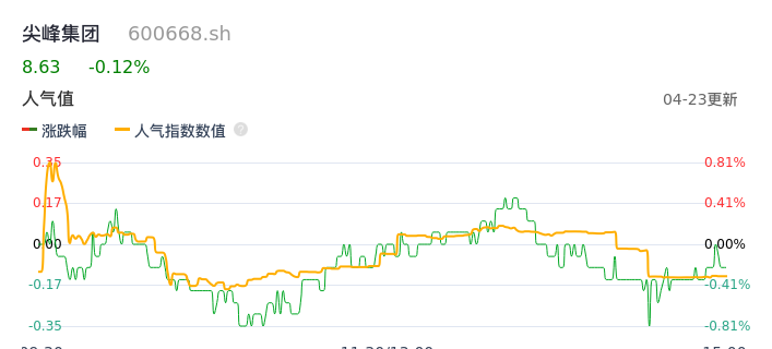 04月23日,尖峰集团收报8.63,股价涨幅-0.12%,成交金额1595.77万元,换手率0.54%。
