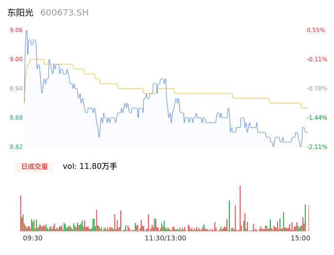 04月30日,东阳光收报8.85,股价涨幅-1.78%,成交金额1.05亿元,换手率0.39%。