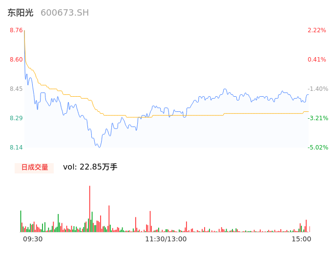 04月23日,东阳光收报8.42,股价涨幅-1.75%,成交金额1.90亿元,换手率0.76%。
