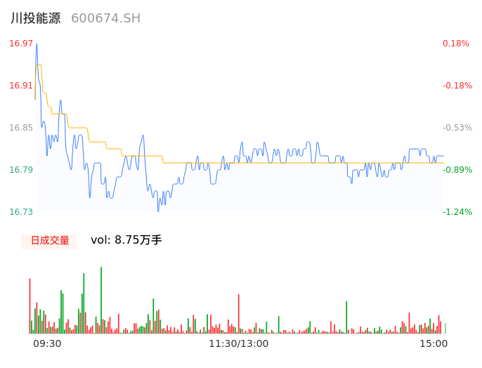 04月25日,川投能源收报16.80,股价涨幅-0.83%,成交金额1.47亿元,换手率0.18%。